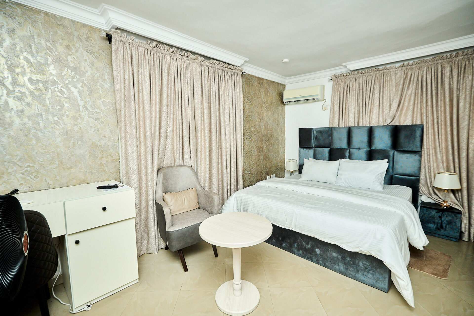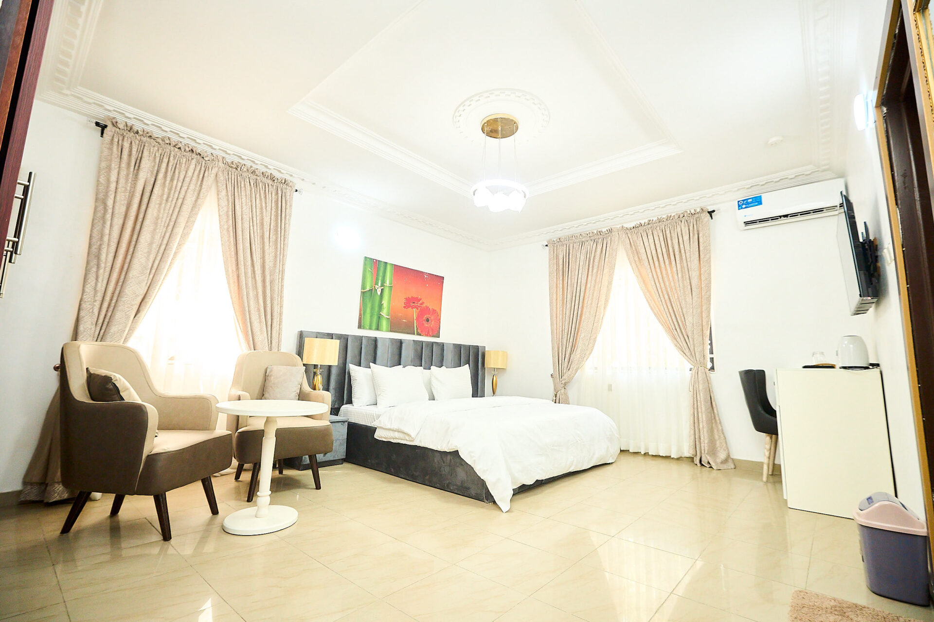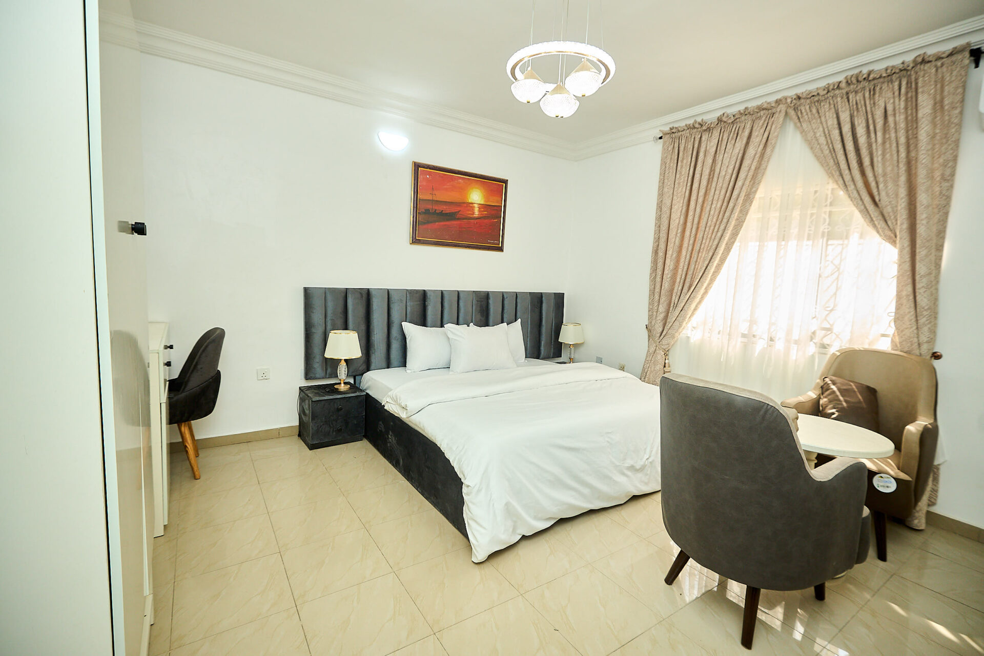 Experience unmatched comfort and elegance in our Deluxe Room at D’Mayors Suites. Designed for relaxation and productivity, this thoughtfully furnished space offers a cozy retreat in the heart of Abuja.